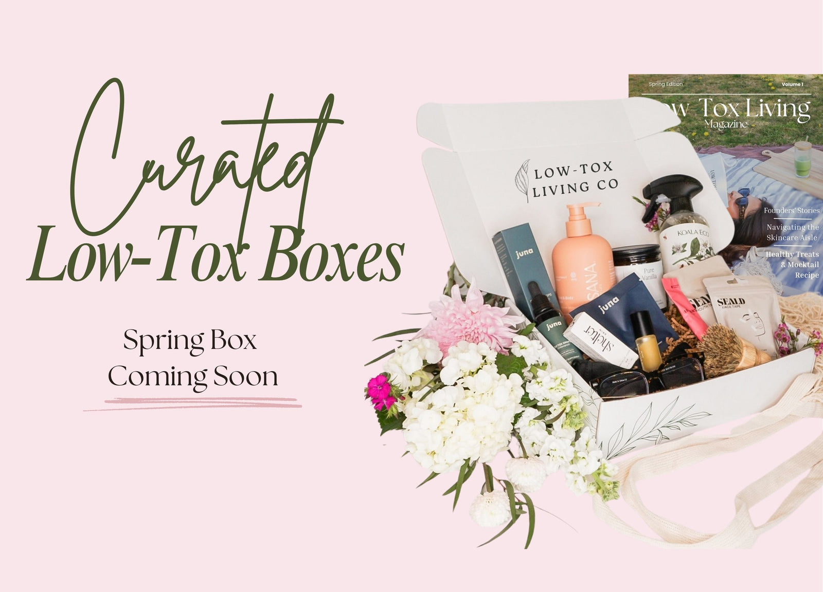 Select a quarterly seasonal subscription box at a discounted price, or choose a themed one-time curated low-tox box.